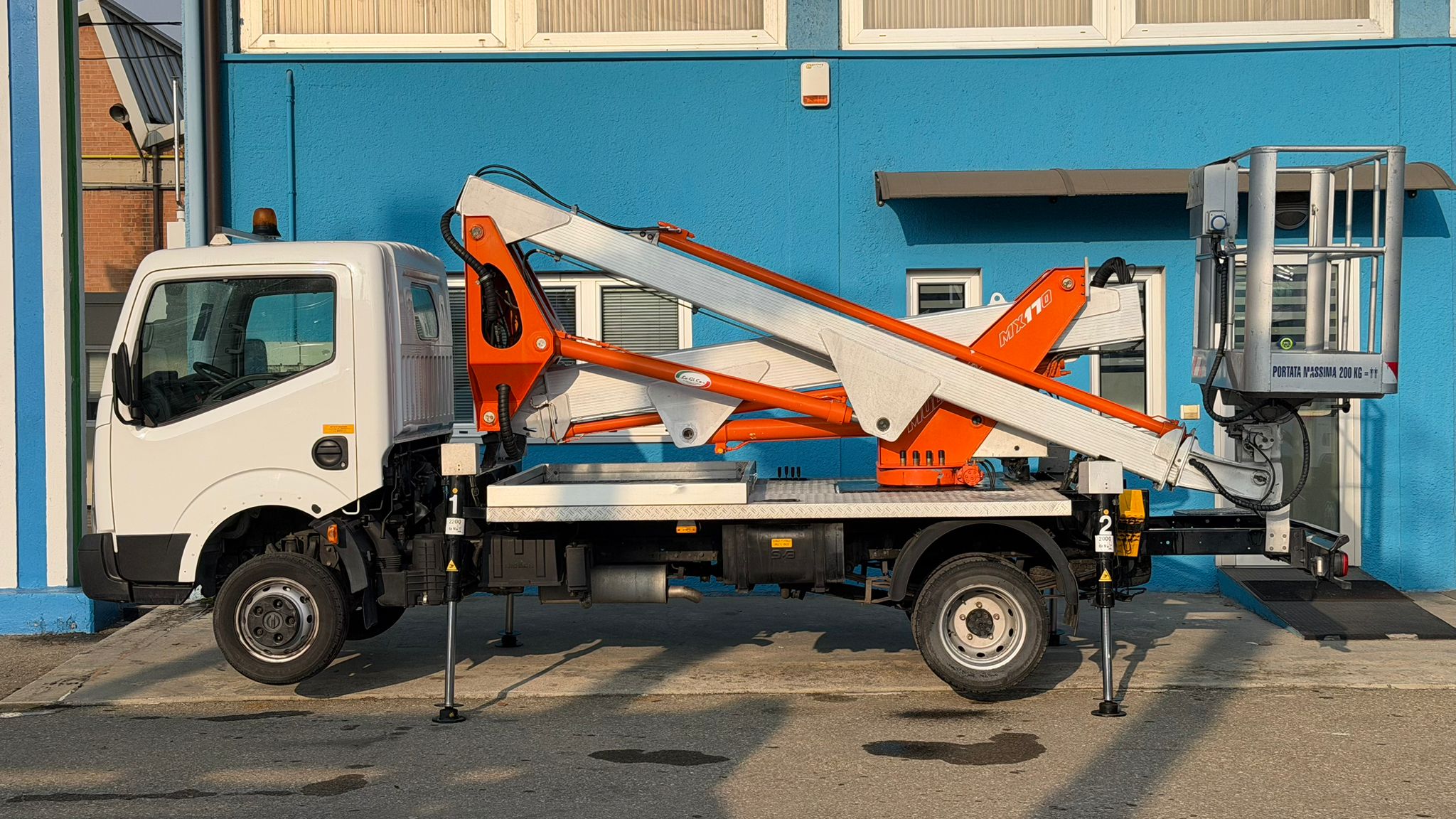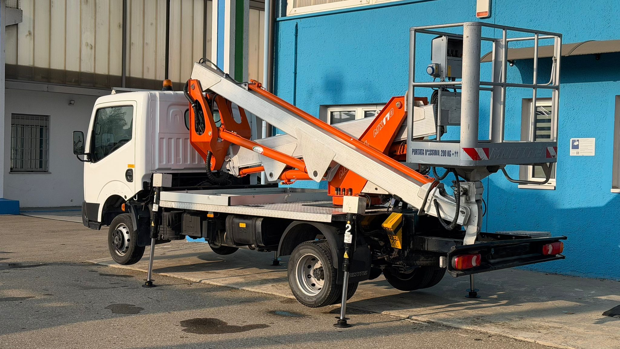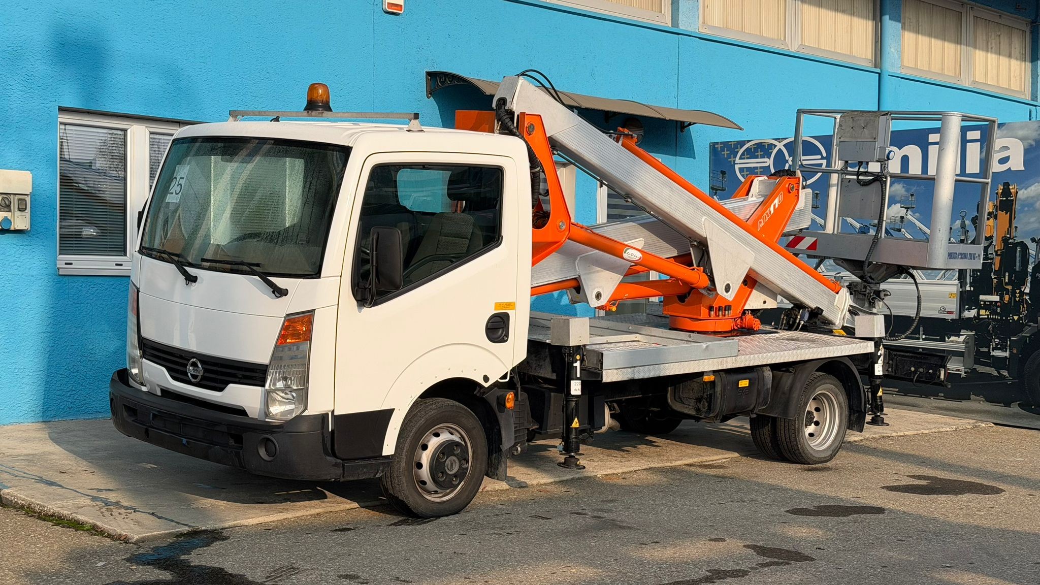 Nissan Cabstar, anno 2009, allestito con piattaforma aerea Multitel Pagliero MX170.