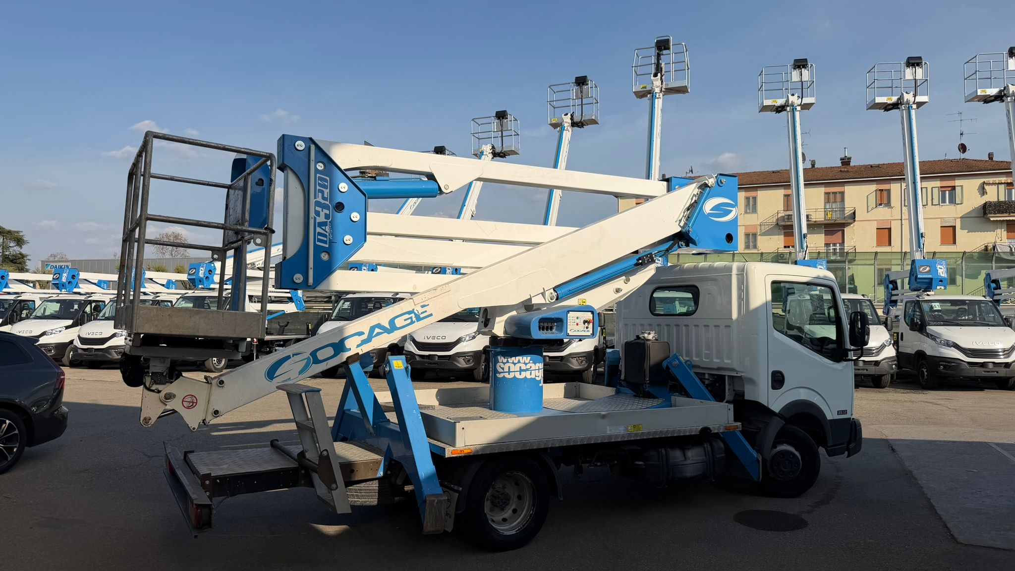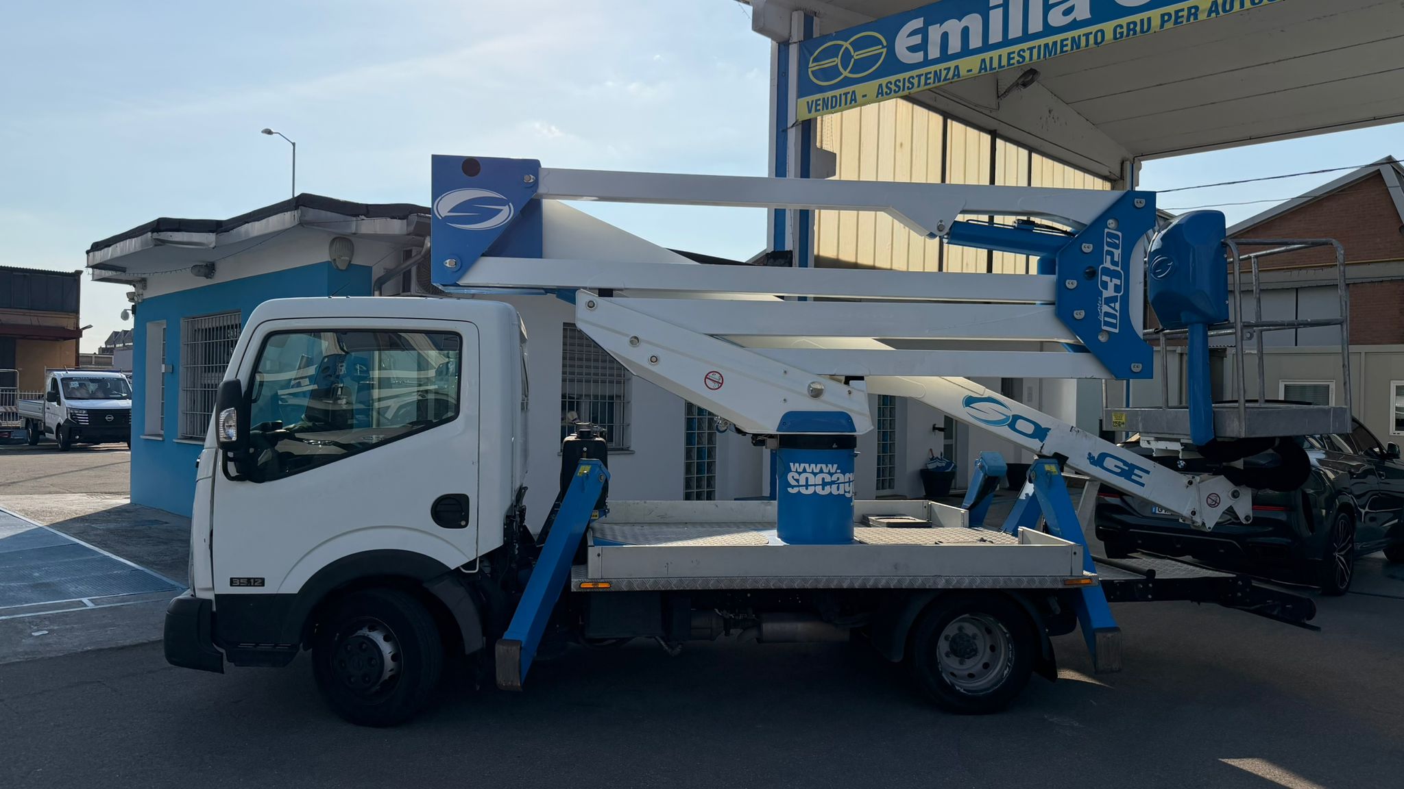 Nissan Cabstar NT400, anno 2016, allestito con piattaforma aerea Socage DA320 ForSte.